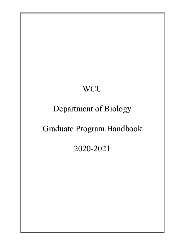 WCU Department of Biology Graduate Program Handbook 20202021Table of Contents Master of Science Introduction Program Objectives General and Course Requirements Advising Sheets and Forms Completion