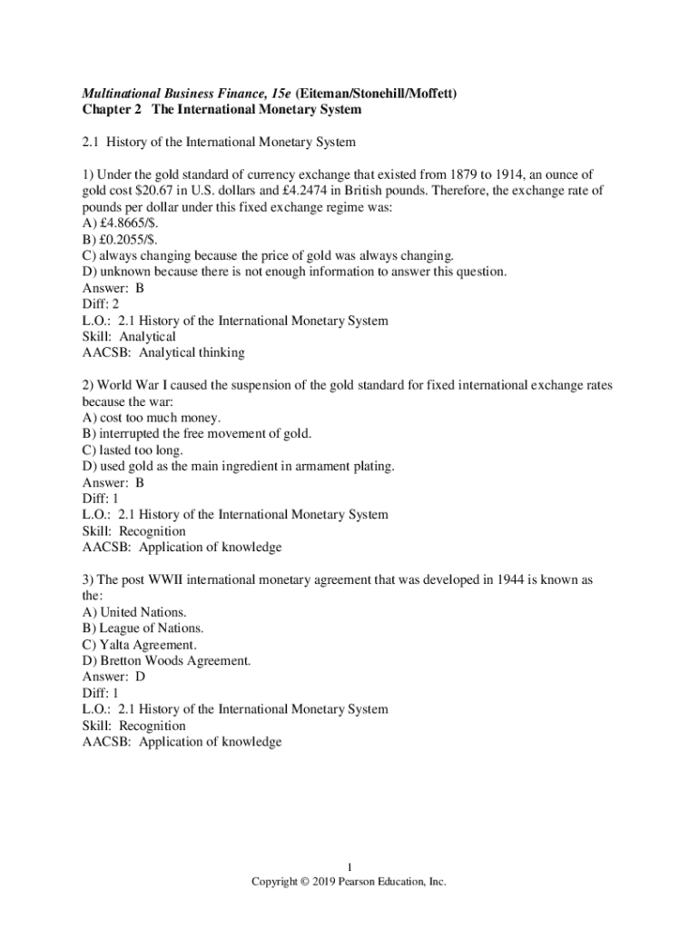 Multinational Business Finance, 15e (Lineman/Stone hill/Buffett) Chapter 2 The International Monetary System 2.1 History of the International Monetary System 1) Under the gold standard of currency