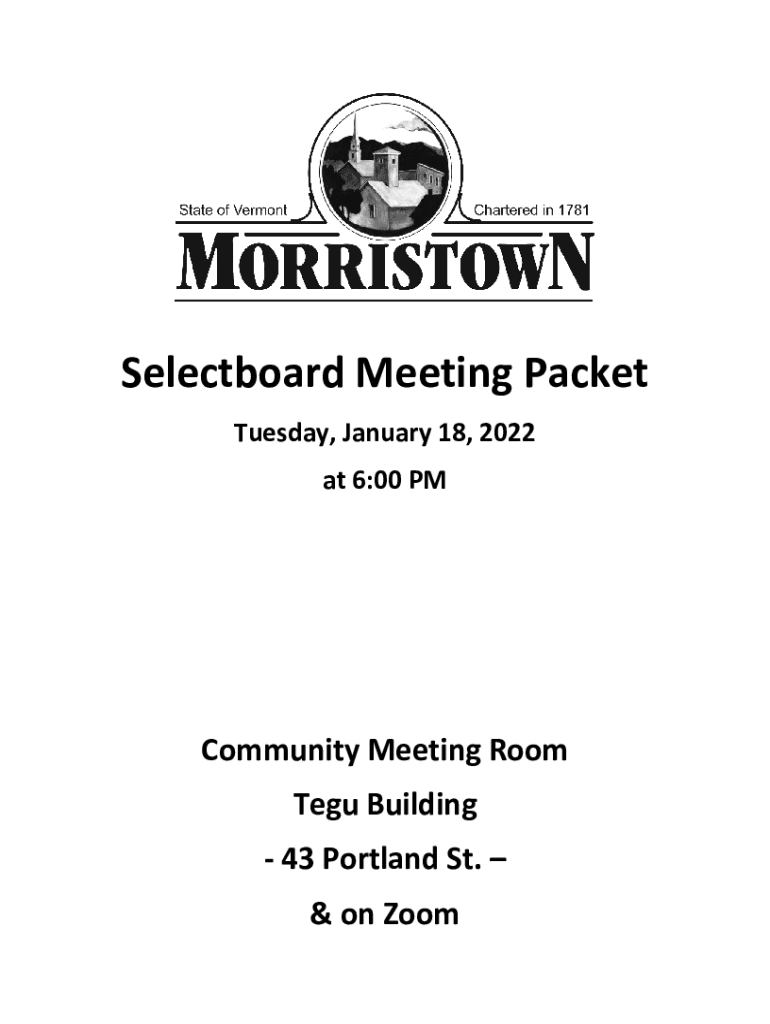 Select board Meeting Packet Tuesday, January 18, 2022, at 6:00 Community Meeting Room Taegu Building 43 Portland St. & on ZoomMORRISTOWN SELECTOR MEETING NOTICE & AGENDA COMMUNITY MEETING ROOM On