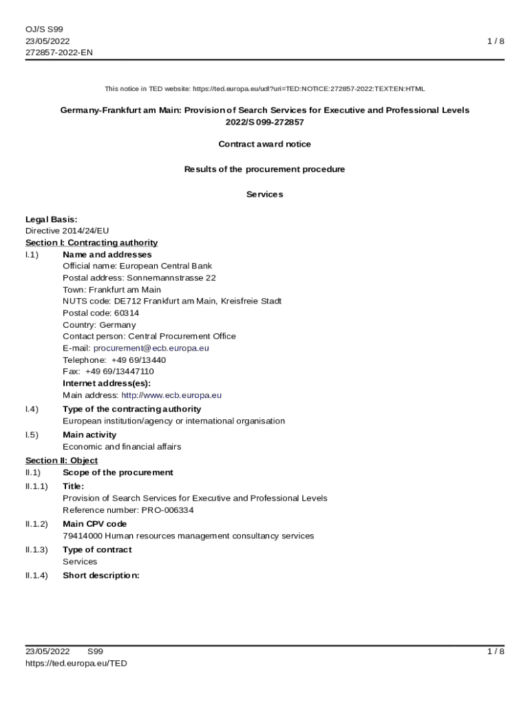 OJ/S S99 23/05/2022 2728572022EN1/8This notice in TED website: https://ted.europa.eu/udl?uriTED:NOTICE:2728572022:TEXT:EN:HTMLGermanyFrankfurt am Main: Provision of Search Services for Executive and