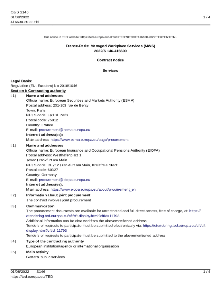 OJ/S S146 01/08/2022 4166002022EN1/4This notice in TED website: https://ted.europa.eu/udl?uriTED:NOTICE:4166002022:TEXT:EN:HTMLFranceParis: Managed Workplace Services (MWS) 2022/S 146416600 Contract