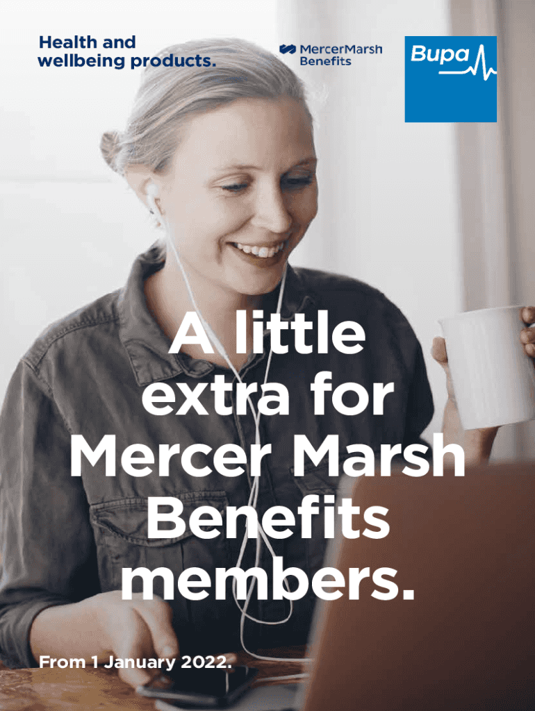Health and wellbeing products. Mercer Marsh Benefits... A little extra for Mercer Marsh Benefits members. From 1 January 2022. This document is designed to give a high level overview of the various