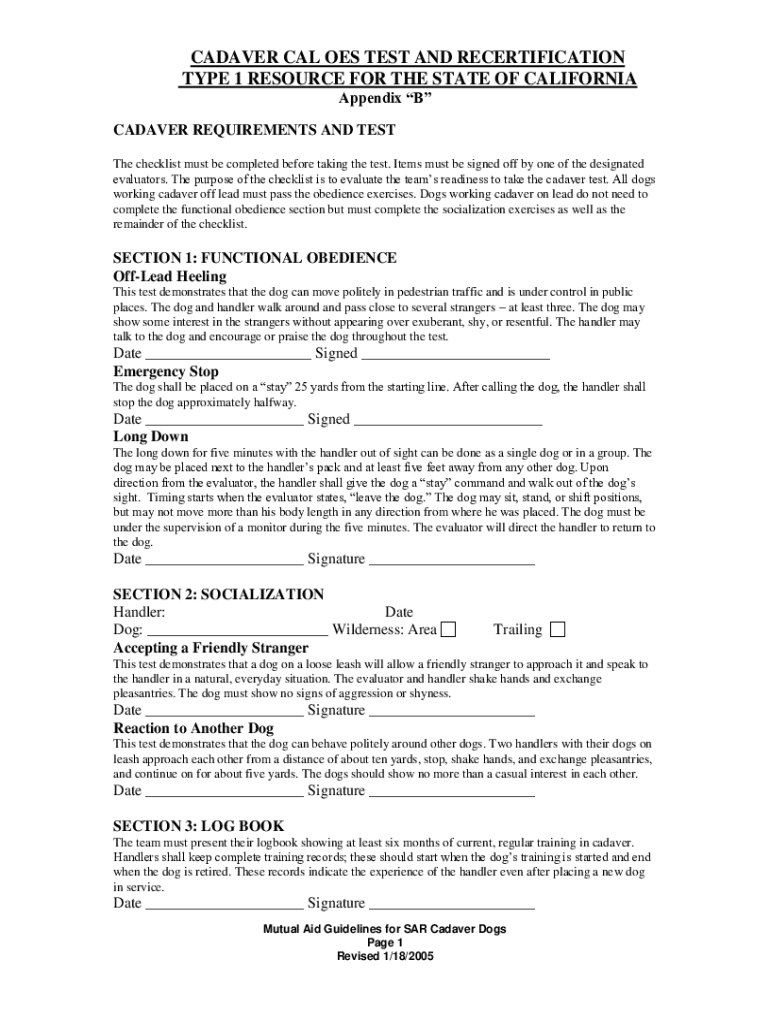 The wwwcaloescagovsar-dog-appendix-b-cadavercadaver cal oes test can be filled out online through the official California Office of Emergency Services website.