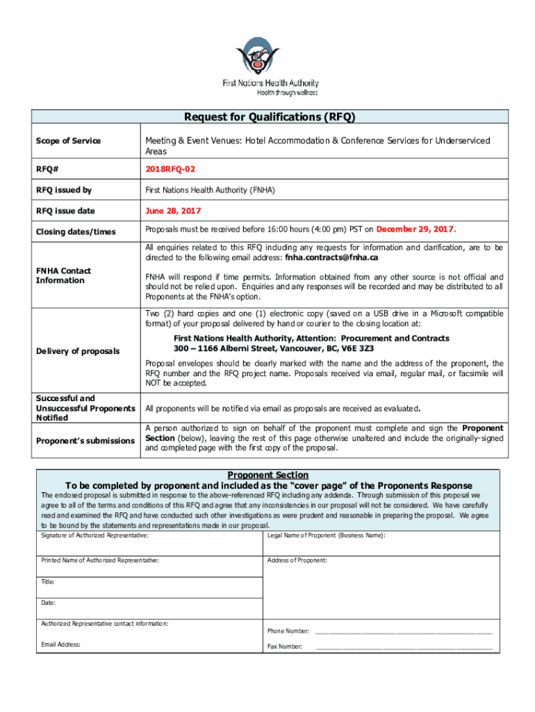 Areas#2018RFQ02RFQ issued first Nations Health Authority (FHA)RFQ