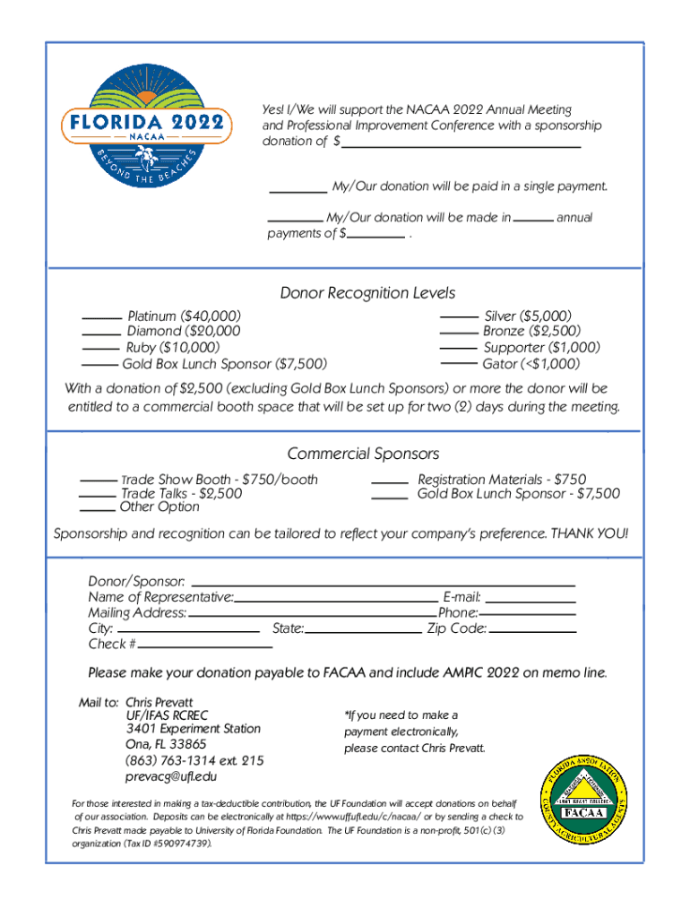 Yes! I/We will support the NCAA 2022 Annual Meeting and Professional Improvement Conference with a sponsorship donation of $ My/Our donation will be paid in a single payment. My/Our donation will