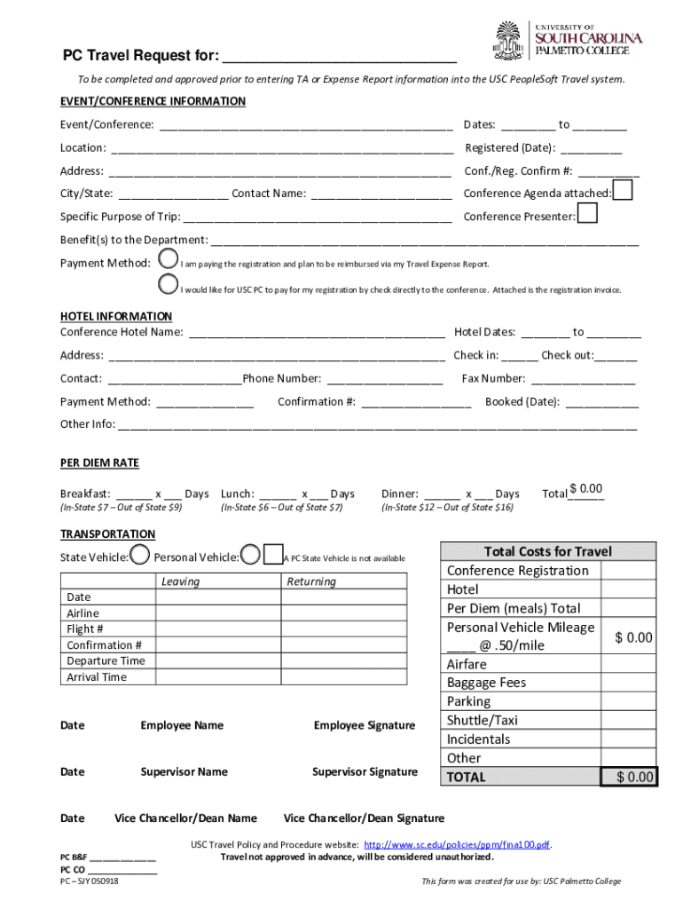 Get the free www.sc.edudocumentsfacstaffPC Travel Request for: - University of South Carolina