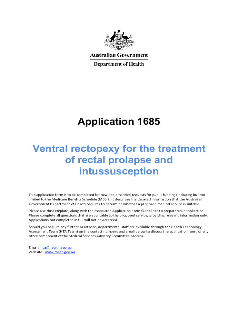 Application 1685 Ventral recovery for the treatment of rectal prolapse and intussusception This application form is to be completed for new and amended requests for public funding (including but not