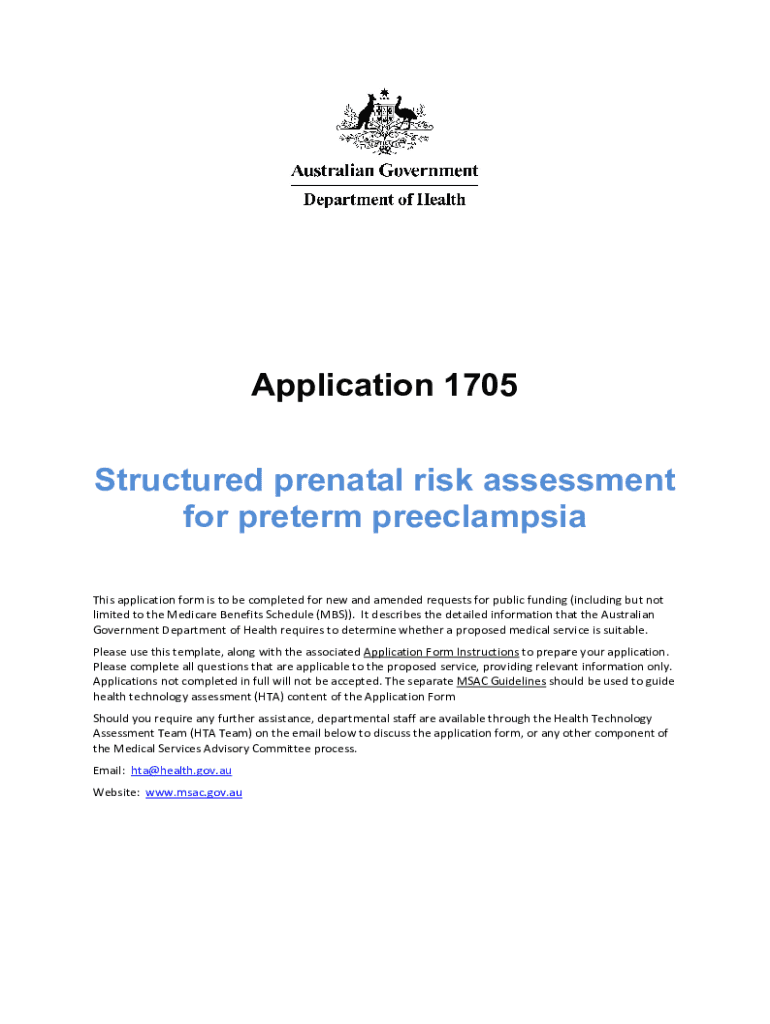 Application 1705 Structured prenatal risk assessment for preterm preeclampsia This application form is to be completed for new and amended requests for public funding (including but not limited to