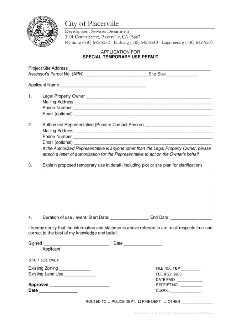Get the free Special Temporary Use Permit Process - City of Placerville
