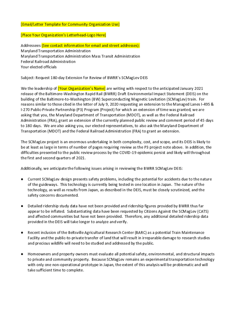 Get the free Email/Letter Template for Community Organization Use - AWS