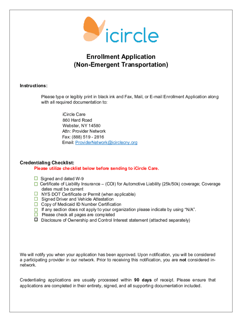 Enrollment Application (Convergent Transportation) Instructions: Please type or legibly print in black ink and Fax, Mail, or Email Enrollment Application along with all required documentation to: