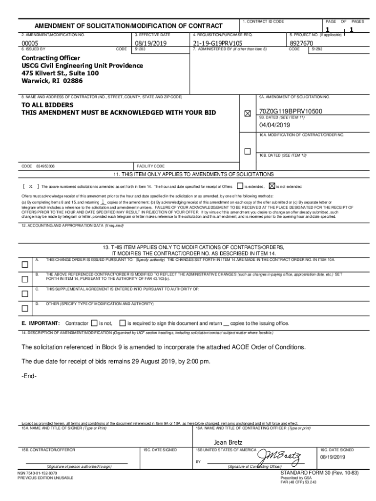 Get the free N6523619F3507P00005 - FINAL 1 2 AMENDMENT OF SOLICITATION/MODIFICATION ...