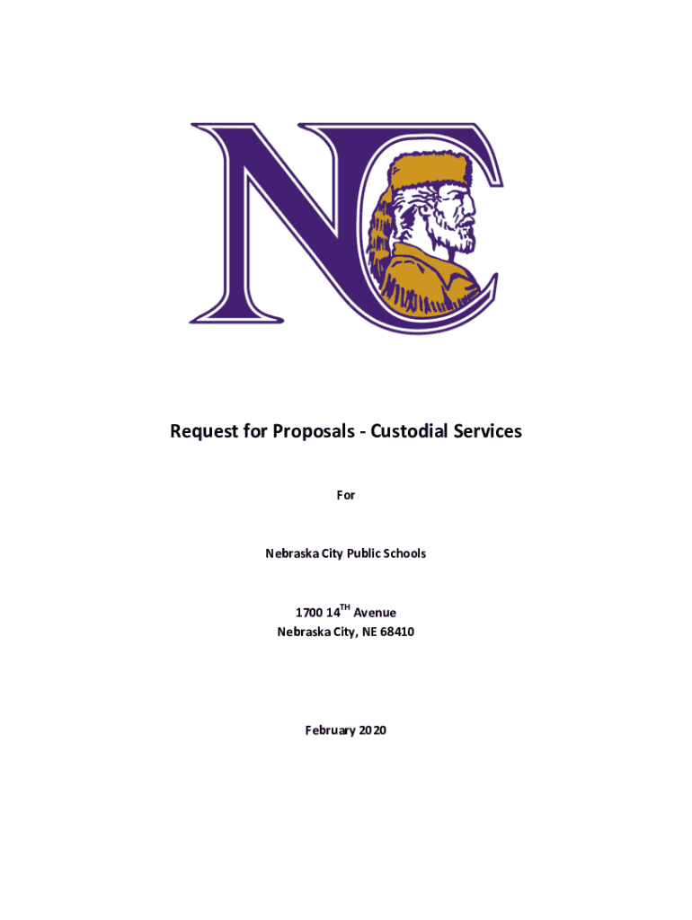 Request for Proposals Custodial ServicesForNebraska City Public Schools1700 14TH Avenue Nebraska City, NE 68410February 2020INVITATION TO REQUEST FOR PROPOSAL CUSTODIAL SERVICES Nebraska City Public Schools1700 14th Avenue