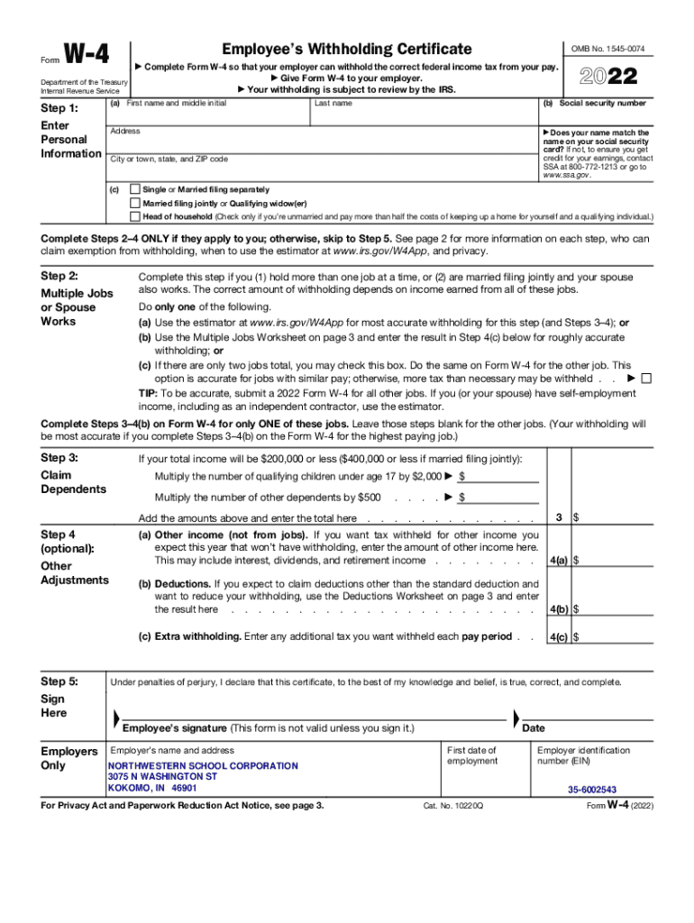 Step 1: Obtain a copy of the Employees Withholding Certificate (Form W-4) from the Internal Revenue Service (IRS) website or your employer.