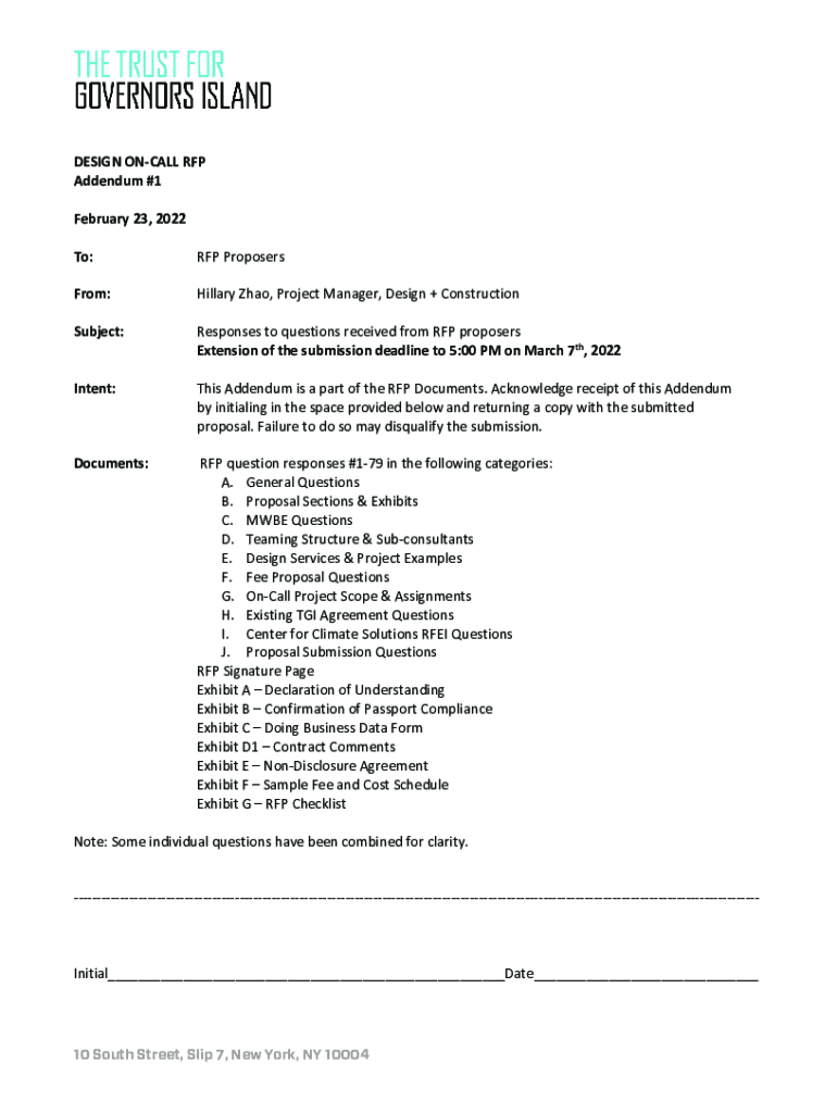 DESIGN CALL RFP Addendum #1 February 23, 2022, To:RFP ProposersFrom:Hillary Zhao, Project Manager, Design + ConstructionSubject:Responses to questions received from RFP proposers Extension of the