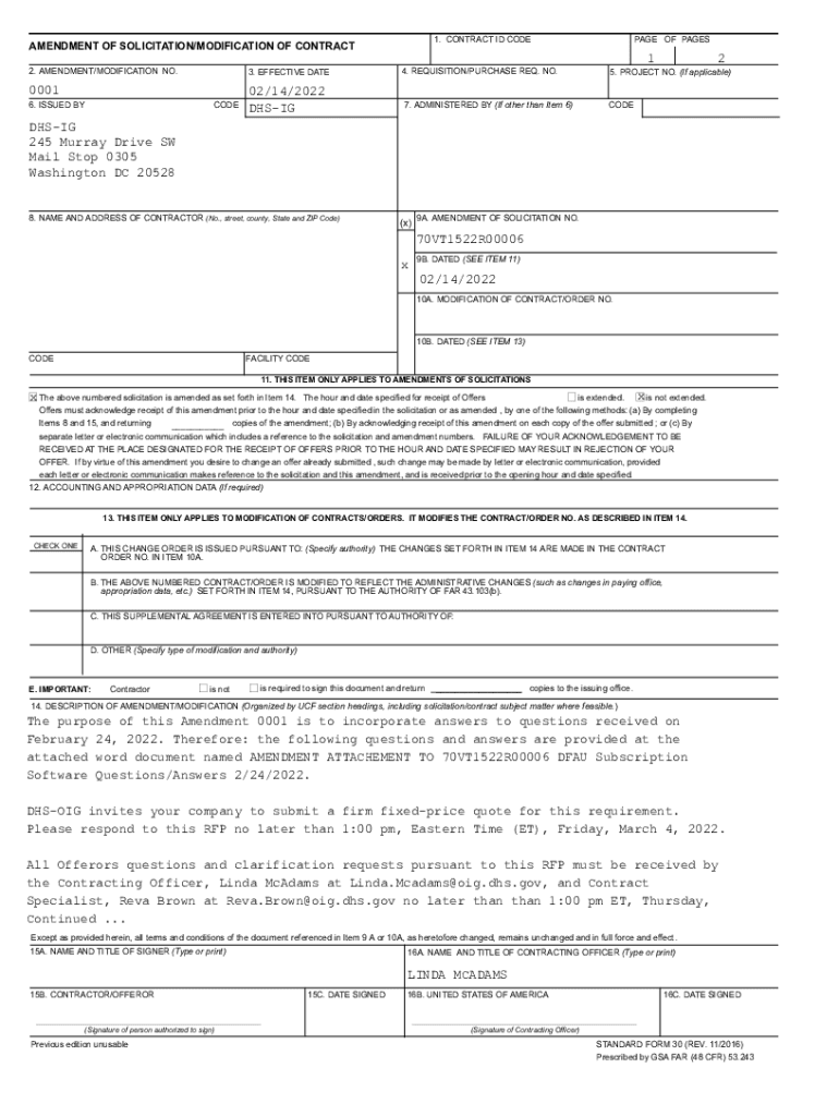 1. CONTRACT ID CODEPENDENT OF SOLICITATION/MODIFICATION OF CONTRACT 2. AMENDMENT/MODIFICATION NO.3. EFFECTIVE DATE0001 6. ISSUED BYCODE02/14/2022 DESIGNATE OF PAGES1 4. REQUISITION/PURCHASE REQ. NO.7.