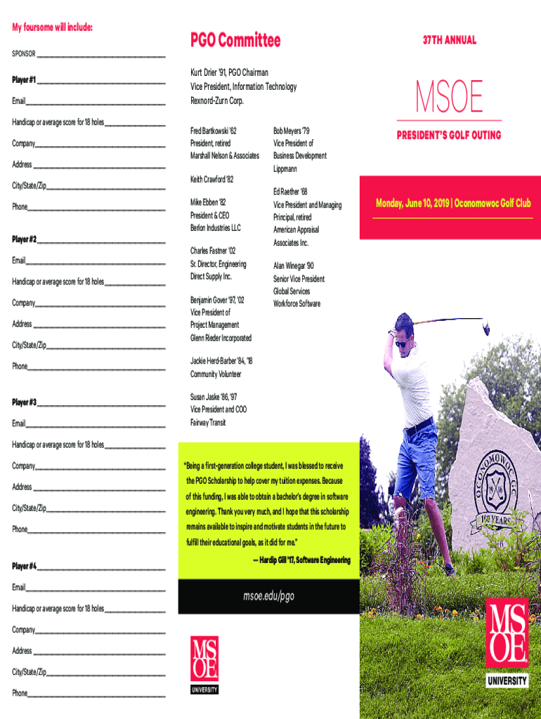 My foursome will include: SPONSOR ___Player #1___ Email___ Handicap or average score for 18 holes___ Company___ Address___ City/State/Zip___ Phone___ Player #2___ Email___ Handicap or average score