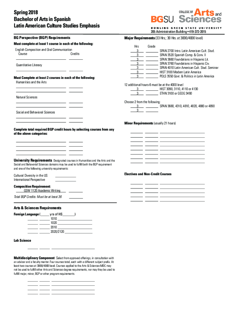 Get the free Spring 2018 Bachelor of Arts in Spanish Latin American ...