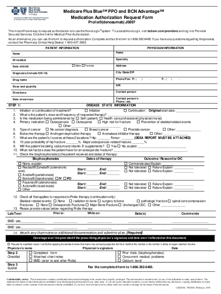 Medication Authorization Request Form Medicare PlusProlia(denosumab) J0897