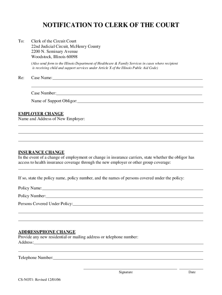 Get the free NOTIFICATION TO CLERK OF THE COURT - McHenry County, IL