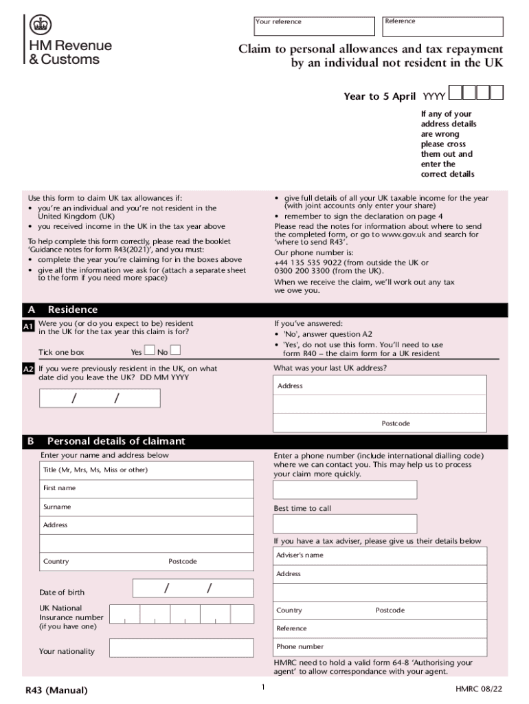 Your referenceReferenceClaim to personal allowances and tax repayment