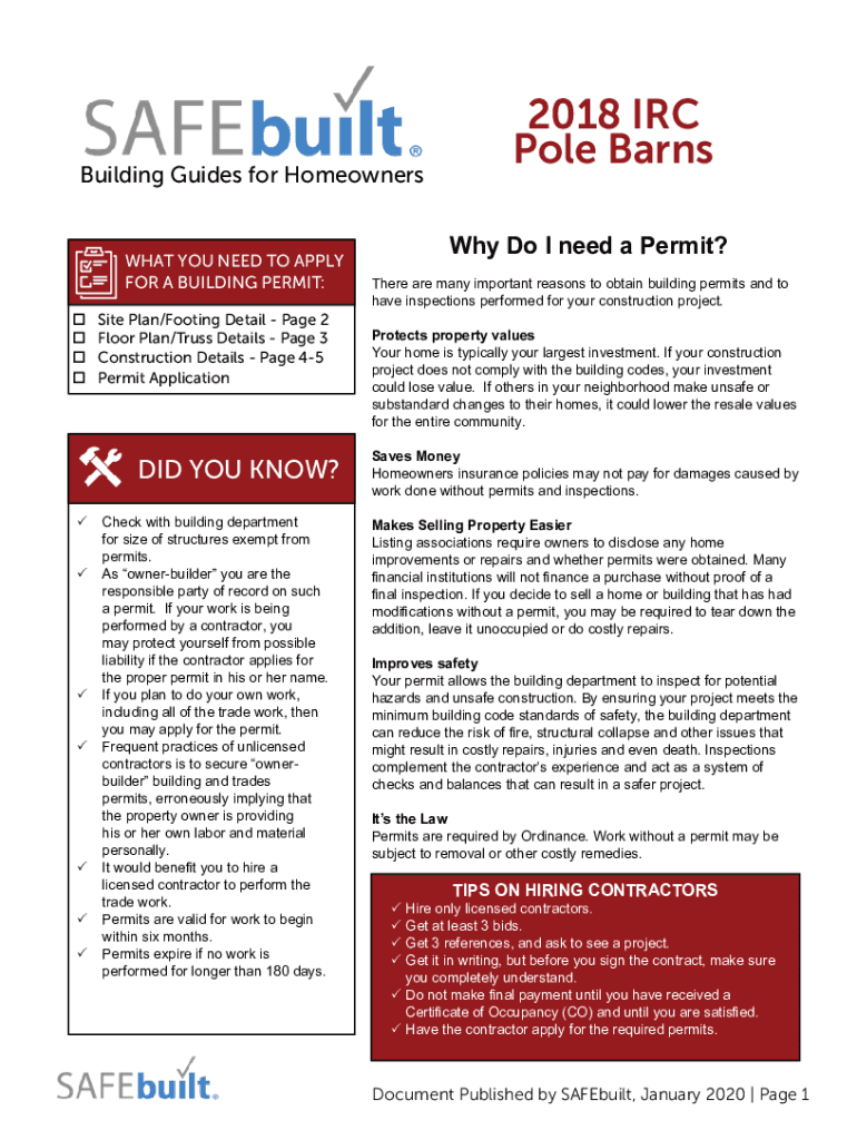 Building Guides for Homeownership YOU NEED TO APPLY FOR A BUILDING PERMIT: Site Plan/Footing Detail Page 2-Floor Plan/Truss Details Page 3 Construction Details Page 45 Permit Application DID YOU KNOW?
