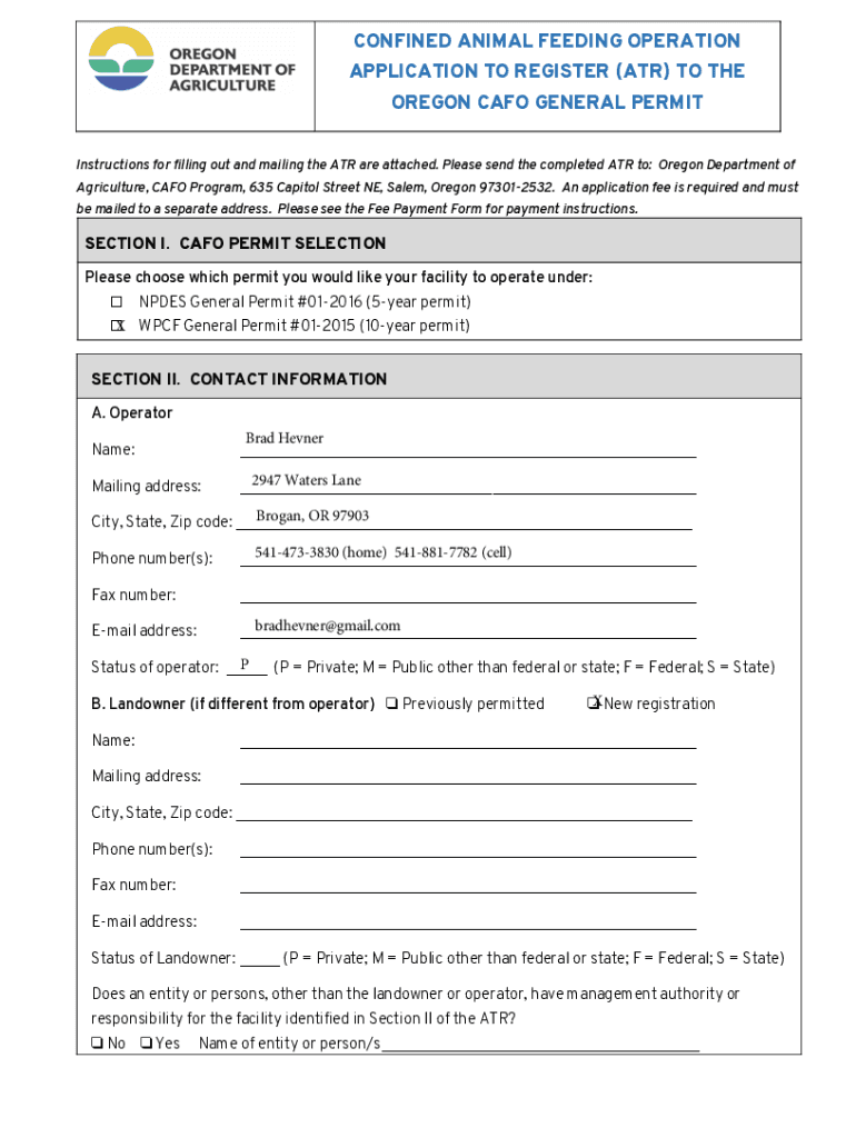 Get the free Hevner Application to Register to the Oregon CAFO General Permit