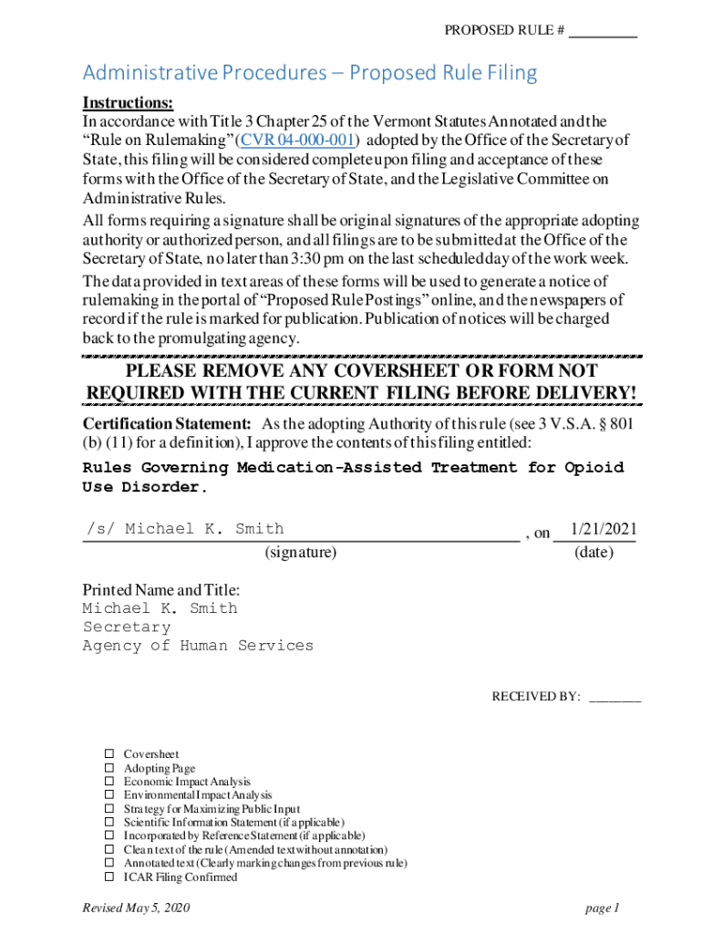 PROPOSED RULE #. Administrative Procedures Proposed Rule Filing Instructions: In accordance with Title 3 Chapter 25 of the Vermont Statutes Annotated and the Rule on Rule making (CVR 04000001) adopted