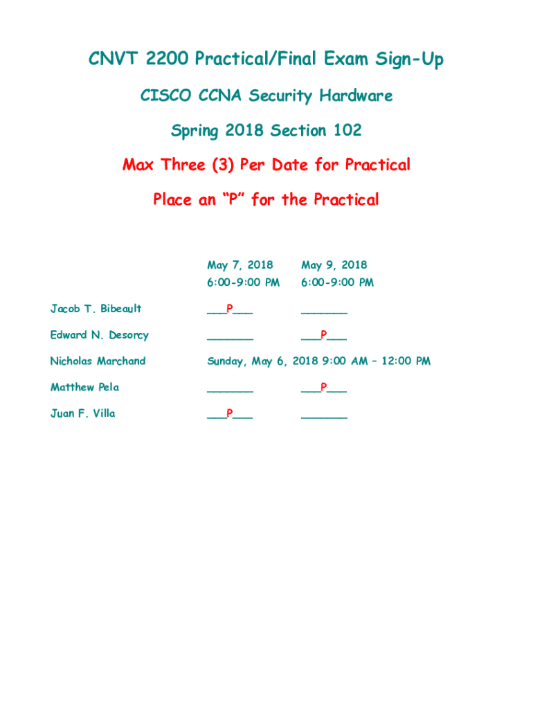 Get the free CNVT 2200 Practical/Final Exam Sign-Up