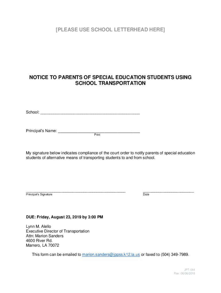 Get the free NOTICE TO PARENTS OF SPECIAL EDUCATION STUDENTS USING SCHOOL TRANSPORTATION