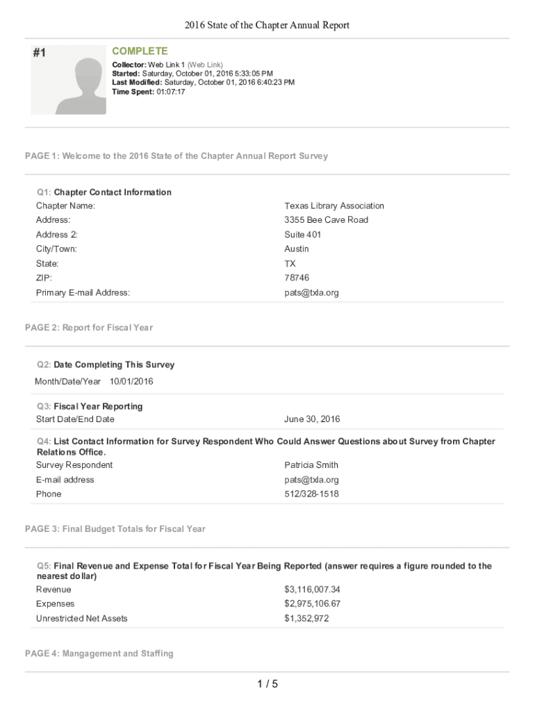 2016 State of the Chapter Annual Report#1COMPLETE Collector: Web Link 1 (Web Link) Started: Saturday, October 01, 2016 5:33:05 PM Last Modified: Saturday, October 01, 2016 6:40:23 PM Time Spent: 01:07:17PAGE