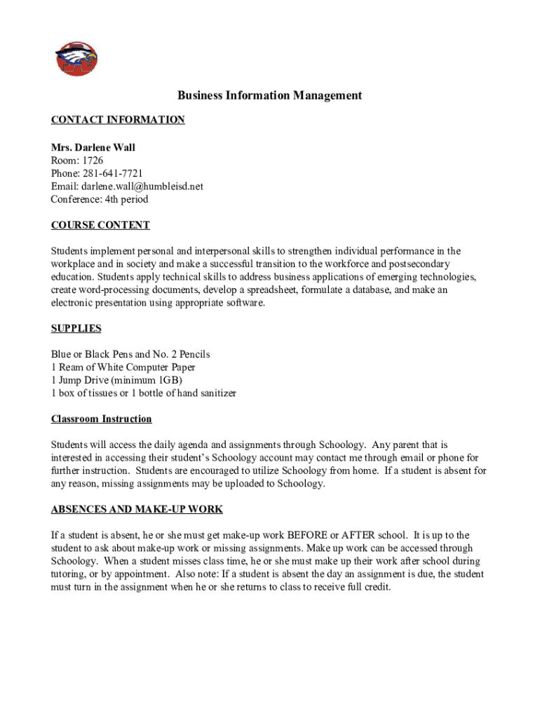 Get the free Business Information Management - Humble ISD