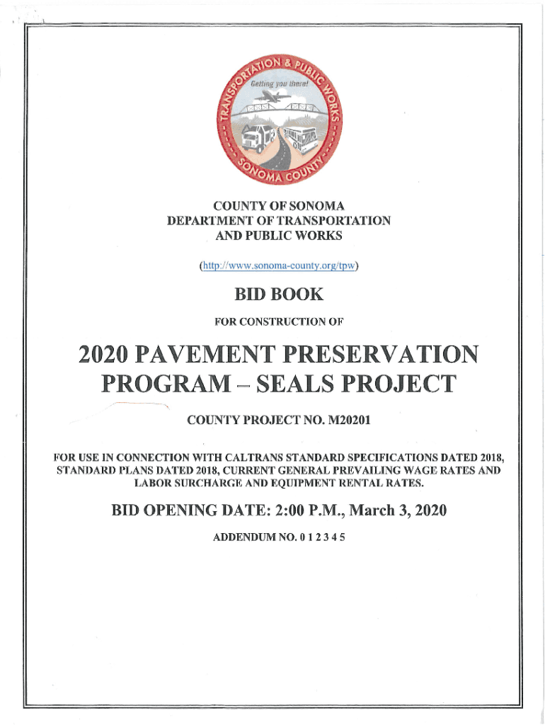 Get the free Bid Book 2020 Pavement Preservation Program Seals Project. County Project #M20201