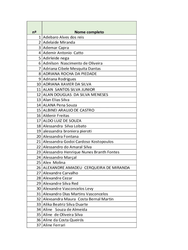 N 1 2 3 4 5 6 7 8 9 10 11 12 13 14 15 16 17 18 19 20 21 22 23 24 25 26 27 28 29 30 31 32 33 34 35 36 37Nome complete Debark Alves dos was Adelaide Miranda Dear Capra Ad emir Antonio Cato Airline Sega