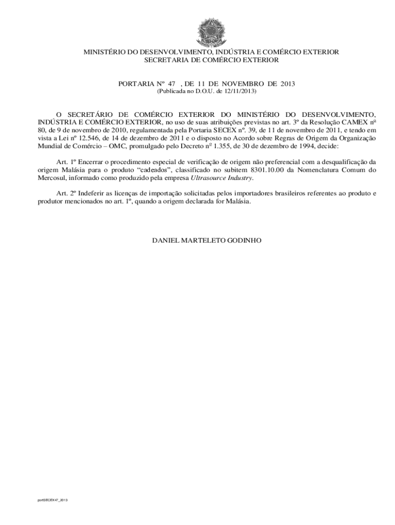 SECRETARIAT DE COERCION EXTERIORPORTARIA N 47, DE 11 DE NOVEMBER DE 2013