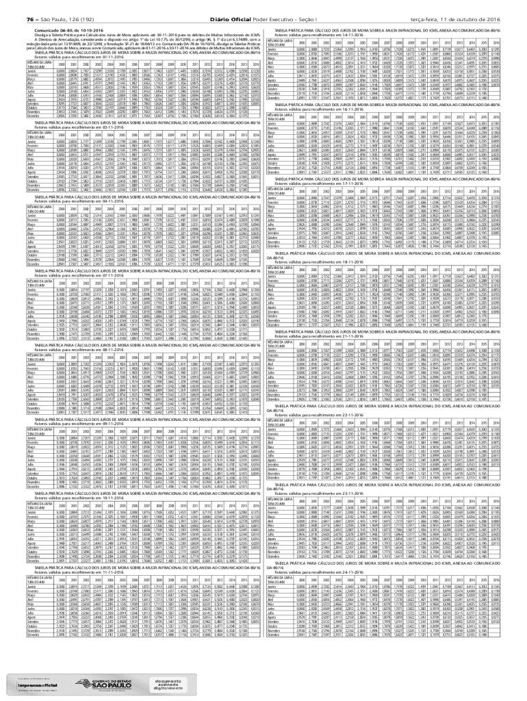 76 So Paulo, 126 (192)Dario Official Power Executive SEO Incommunicado DA80, DE 10102016 Divulge a Tabla Price para Calculi dos Euros de Mora applicants at 30112016 para OS bits de Multan Infractions