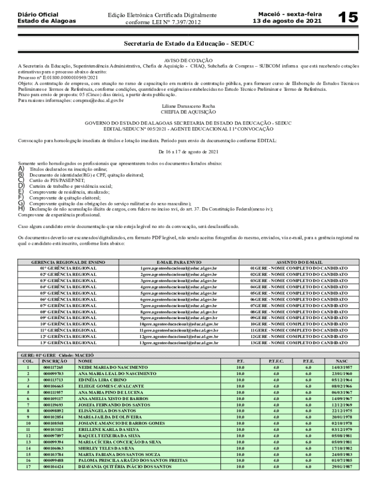 Get the free Dirio OficialImprensa Oficial do Estado de Alagoas(CEPAL)