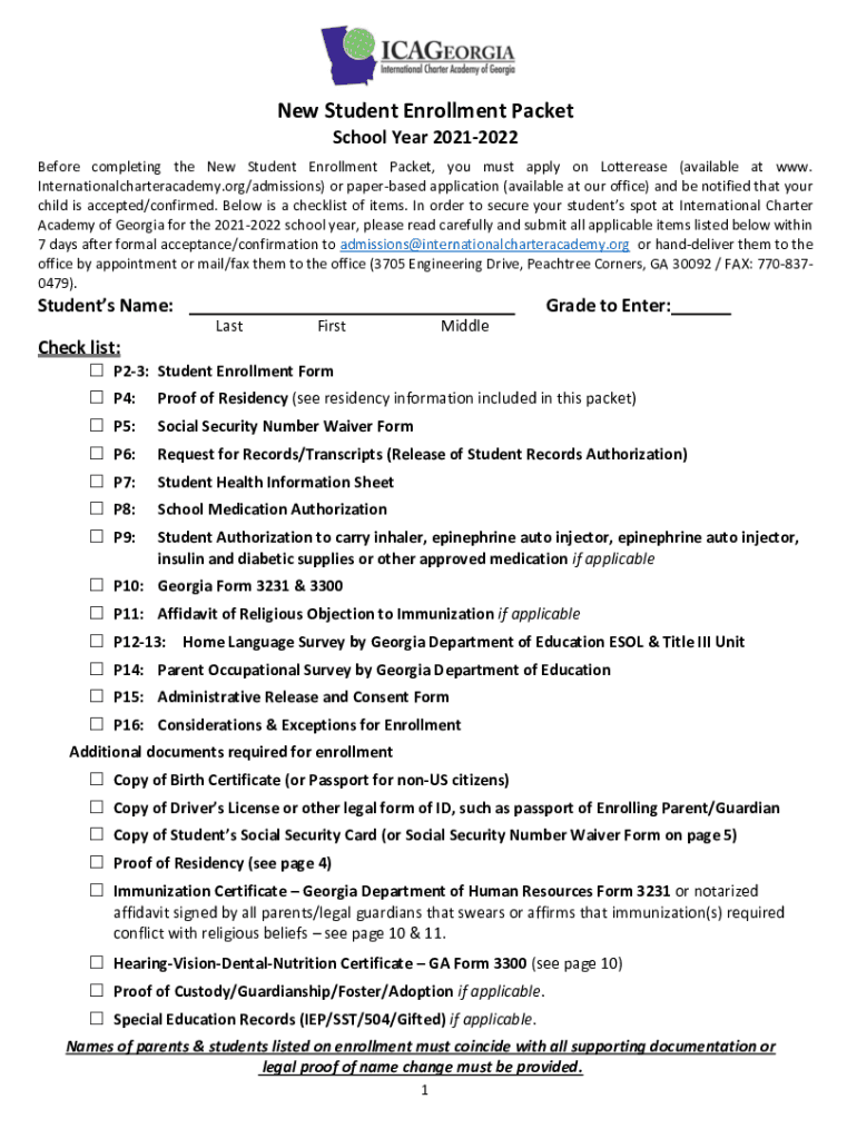New Student Enrollment Packet School Year 20212022 Before completing the New Student Enrollment Packet, you must apply on Lotteries (available at WWW. Internationalcharteracademy.org/admissions) or