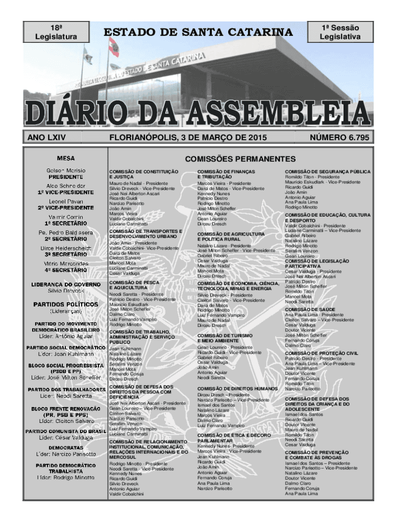 LegislaturaANO LXIVESTADO DE SANTA CATARINAFLORIANPOLIS, 3 DE MAR ODE 20151 Esso