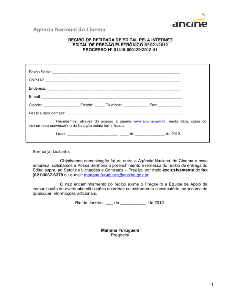 Obtenha o gratuito RECIBO DE RETIRADA DE EDITAL PELA INTERNET EDITAL DE ... O...&nbsp ...