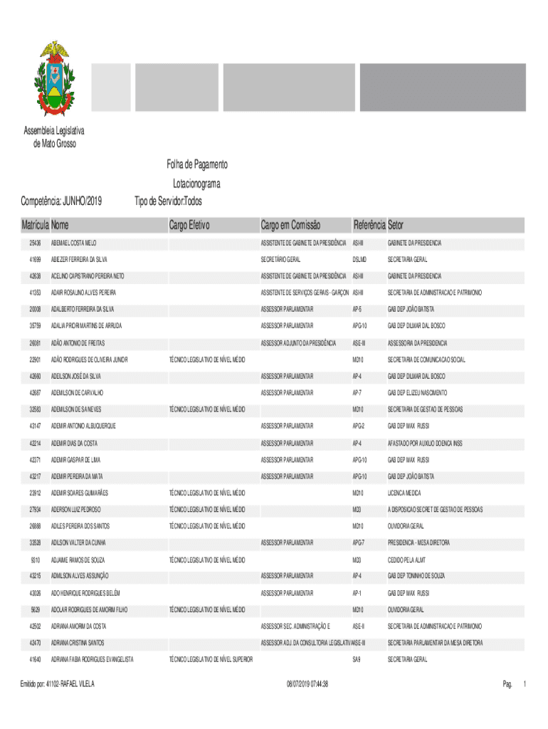 Cargo EfetivoCargo em ComissoReferncia Setor25436ABEMAEL COSTA MELOASSISTENTE