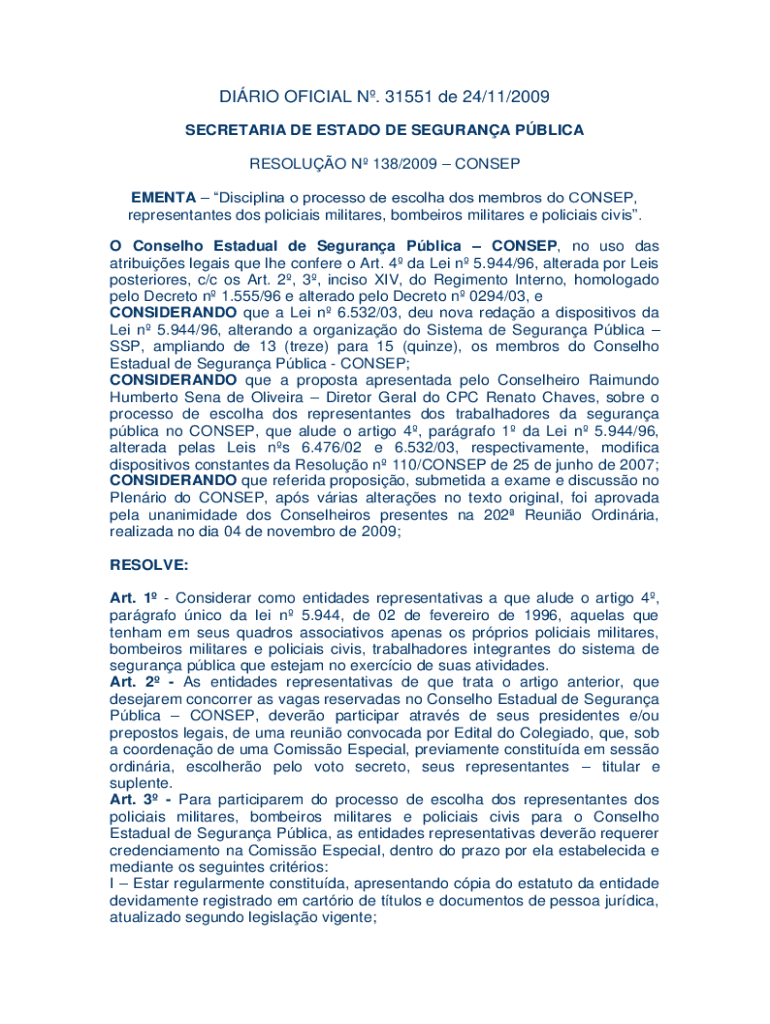 DARIO OFFICIAL N. 31551 DE 24/11/2009
