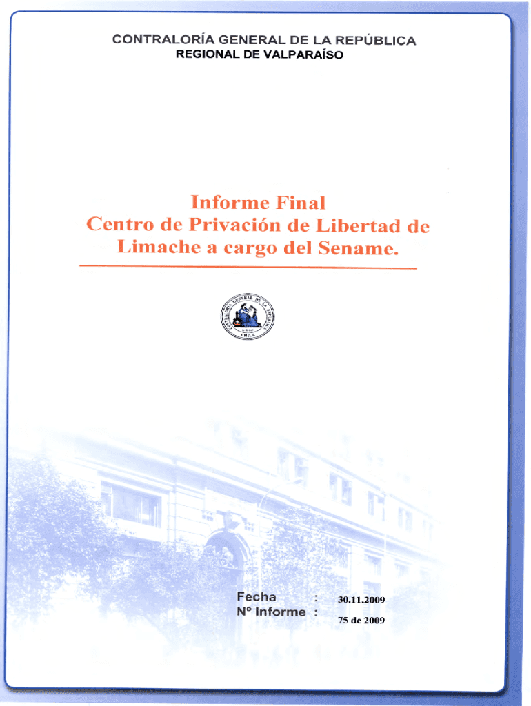 CONTRARY GENERAL DE LA REPLICA REGIONAL DE VALPARAsoInforme Final CENTR de Privacin de Libertad de Limache a cargo Del Senate. Tech N Informed:30.11.2009 75 de 2009CONTRALORA GENERAL DE LA REPLICA