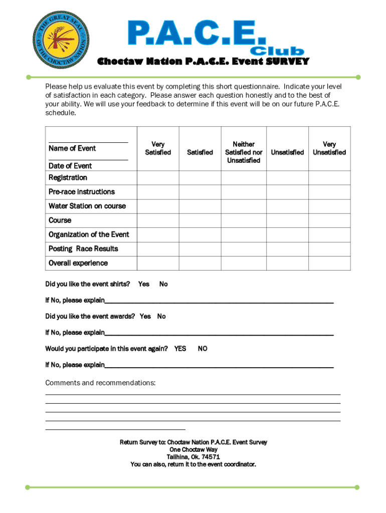Get the free Choctaw Nation P.A.C.E. Event SURVEY