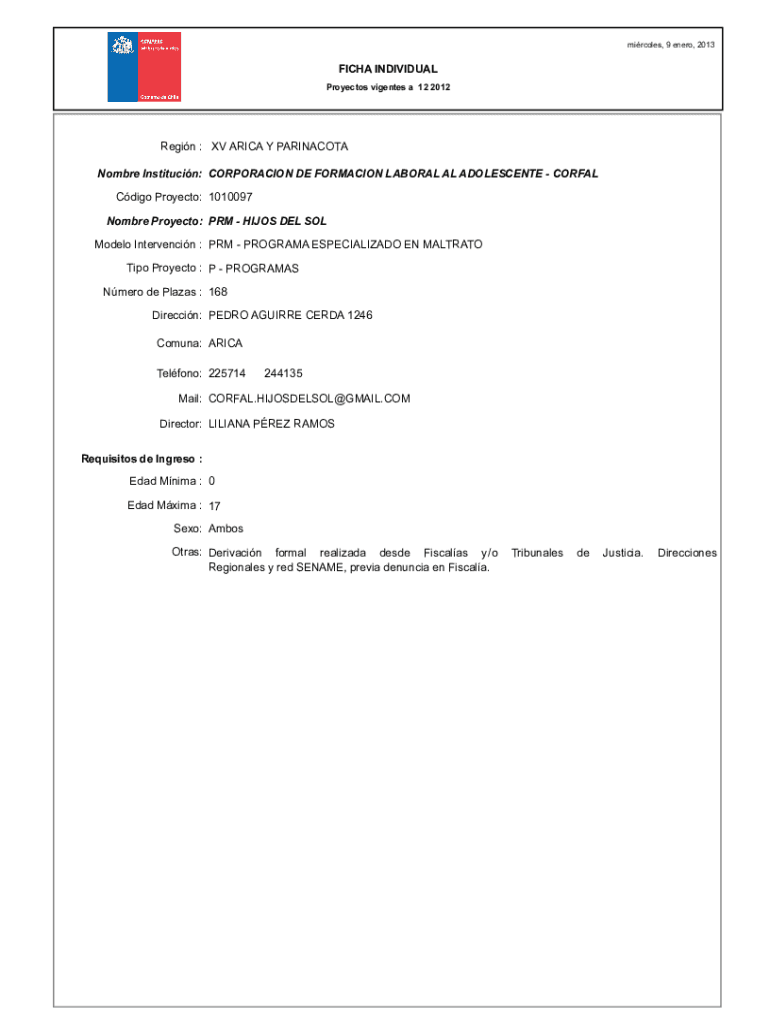 Get the free FICHA INDIVIDUAL PRM - HIJOS DEL SOL PEDRO ... - Sename