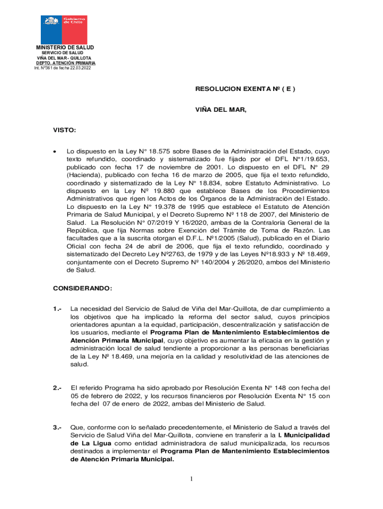 MINISTER DE SALUDSERVICIO DE SALAD VIA DEL MAR QUOTA DEPTH. STENCIL PRIM ARIA Int. N361 de tech 22.03.2022RESOLUCION EVENT N (E)VIA DEL MAR, VITO: Lo dispute en la La N 18.575 sober Bases de la Administration