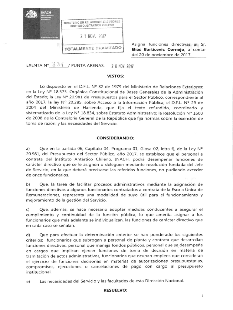 &INACHrlillslERlo DE RELACIoNE9\'i \'\” itrOkINSTITUfO Al\'ARF ICO ;her\” tsrrL1llV7?t7ITOTALME,I\” I\” f1. S\' AI4ITADOAsigna functions directives a Sr. Eras Barticevic Corner, a contra Del
