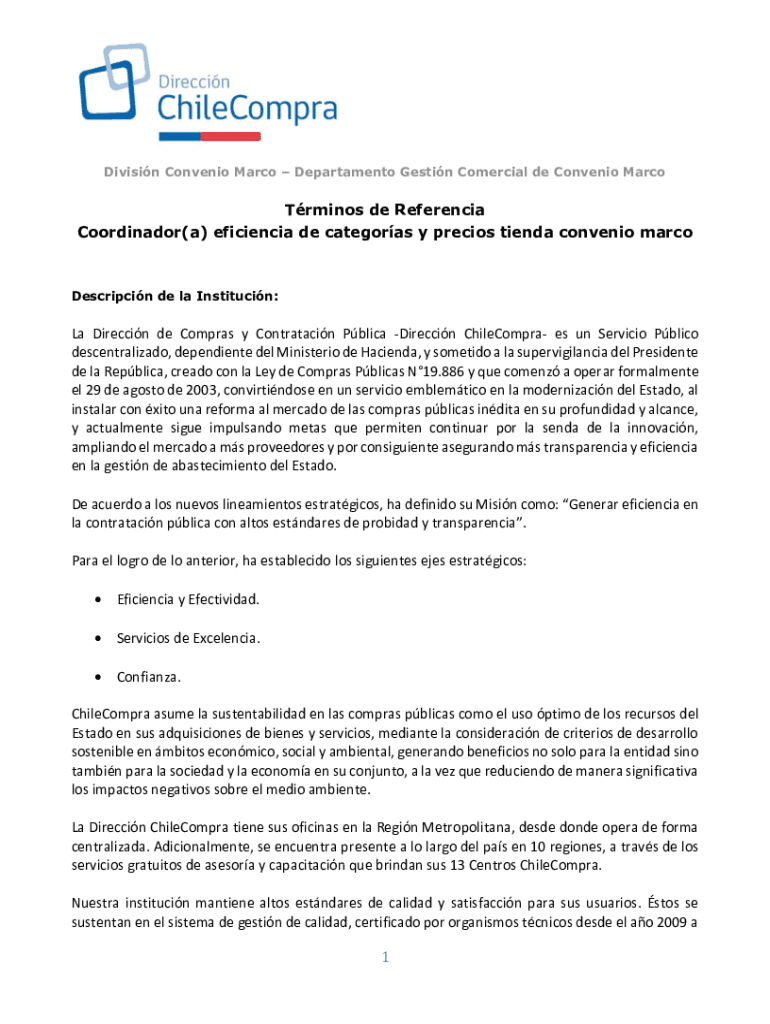 Division Convention Marco Department Getting Commercial de Convenio MarcoTrminos de Referencia Coordinator(a) efficiency DE category y precious tend convention marcoDescripcin de la Institution:La