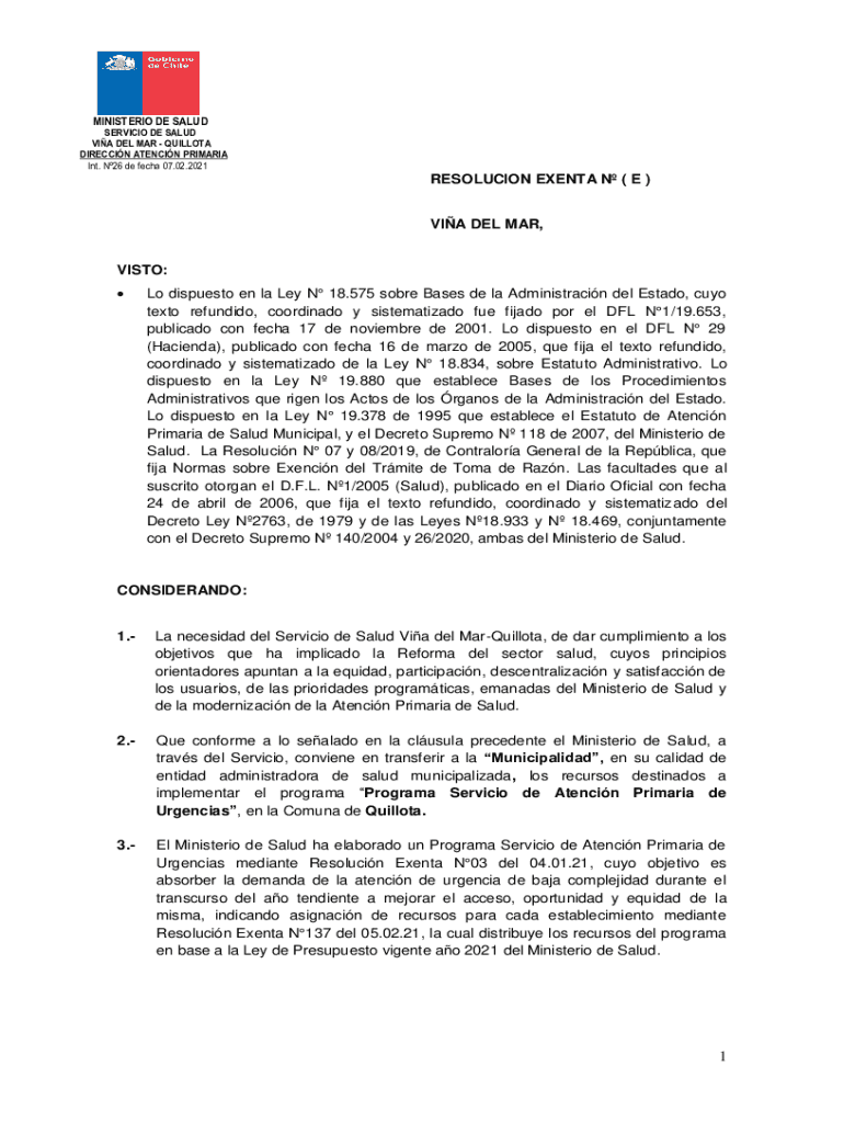MINISTER DE SALAD SERVICE DE SALAD VIA DEL MAR QUOTA DIRECTION STENCIL PRIM ARIA Int. N26 de tech 07.02.2021RESOLUCION EVENT N (E)VIA DEL MAR, VITO: Lo dispute en la La N 18.575 sober Bases de la