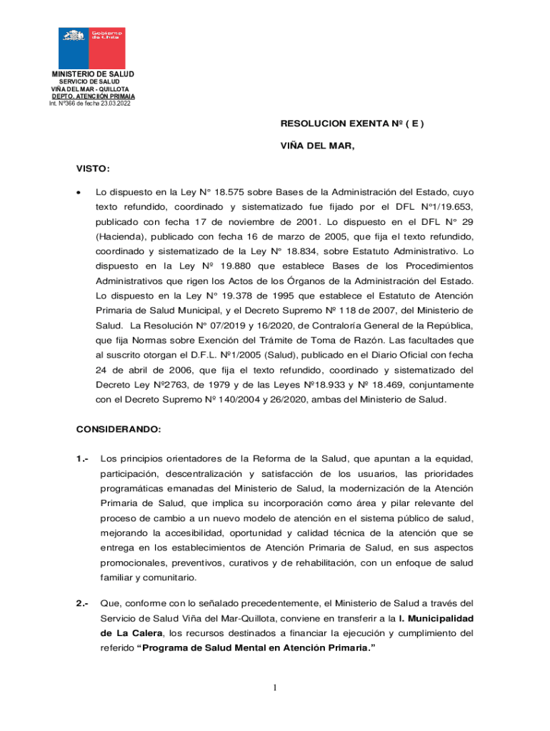 MINISTER DE SALUDSERVICIO DE SALAD VIA DEL MAR QUOTA DEPTH. ATTENTION PRIMARY Int. N366 de tech 23.03.2022RESOLUCION EVENT N (E) VIA DEL MAR, VITO: Lo dispute en la La N 18.575 sober Bases de la Administration